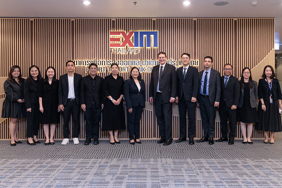 นางสาวดรัสวันต์ ชูวงษ์ ผู้ช่วยกรรมการผู้จัดการ ธนาคารเพื่อการส่งออกและนำเข้าแห่งประเทศไทย (EXIM BANK) ให้การต้อนรับผู้ประกอบการที่เข้าร่วมโครงการ Green Exporter Acceleration Program จัดโดย EXIM BANK เพื่อส่งเสริมศักยภาพผู้ประกอบการไทยในอุตสาหกรรมการเกษตรและอาหาร ตลอด Supply Chain พร้อมให้คำปรึกษาการจัดทำแผนธุรกิจสู่เป้าหมายการปล่อยก๊าซเรือนกระจกเป็นศูนย์ (Net Zero Emissions) เพื่อตอบโจทย์การดำเนินธุรกิจที่เป็นมิตรกับสิ่งแวดล้อม EXIM BANK มีบริการให้คำปรึกษา เติมความรู้ เติมโอกาส และเติมเงินทุน รวมถึงบริการประกันการส่งออก เพื่อสนับสนุนผู้ส่งออกให้สามารถแข่งขันและขยายธุรกิจในตลาดการค้าโลกได้อย่างมั่นใจและยั่งยืน ณ EXIM BANK สำนักงานใหญ่ เมื่อวันที่ 3 กรกฎาคม 2567.