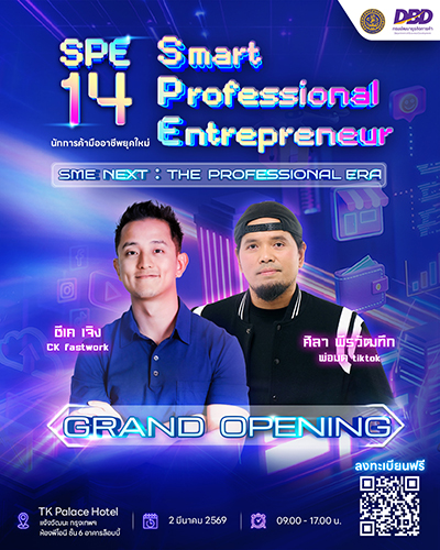 กรมพัฒนาธุรกิจการค้า เดินหน้าโครงการ DBD-SPE รุ่น 14 ดึง ซีเค เจิง CEO Fastwork และ ศิลา พีรวัฒฑึก พ่อมด TikTok ติวเข้มกลยุทธ์ทำเงิน ปั้น SME ไทยให้พร้อมแข่งขันในโลกธุรกิจที่หมุนเร็ว
