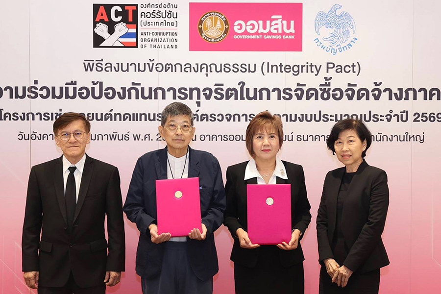 ธนาคารออมสินลงนามข้อตกลงคุณธรรมโครงการเช่ารถยนต์ทดแทน มูลค่ากว่า 1,000 ล้านบาท ร่วมองค์กรต่อต้านคอร์รัปชันฯ และกรมบัญชีกลาง เป็นสักขีพยาน ตอกย้ำการจัดซื้อจัดจ้างโปร่งใส ตรวจสอบได้ และเปิดแข่งขันอย่างเป็นธรรมตามหลักธรรมาภิบาลภาครัฐ