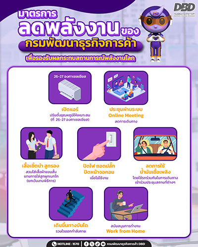 สอบถามรายละเอียดเพิ่มเติมได้ที่ กรมพัฒนาธุรกิจการค้า กระทรวงพาณิชย์ Call Center 1570 และ เว็บไซต์กรมพัฒนาธุรกิจการค้า www.dbd.go.th.