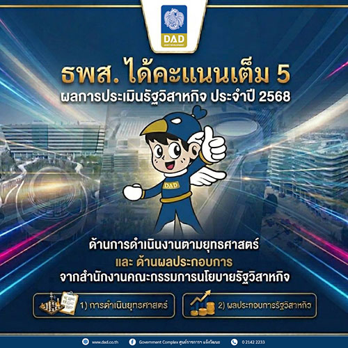 DAD คว้าคะแนนเต็ม 5 ประเมิน สคร. ด้านยุทธศาสตร์ 3 ปีซ้อน