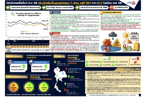 การปรับตัวเพิ่มขึ้นของดัชนีดังกล่าว เป็นผลมาจากหลายปัจจัยสำคัญ ได้แก่ มาตรการกระตุ้นการใช้จ่าย อาทิ โครงการคนละครึ่งพลัส เที่ยวดีมีคืน และการเติมเงินบัตรสวัสดิการแห่งรัฐ ซึ่งมีส่วนช่วยบรรเทาภาระค่าครองชีพของประชาชน และส่งผลดีต่อการบริโภคสินค้าอาหาร เครื่องดื่มและสินค้าอุปโภคบริโภคอย่างต่อเนื่อง นอกจากนี้ การเข้าสู่ช่วง High Season ยังส่งผลเชิงบวกต่อการบริโภคสินค้าและอุตสาหกรรมที่เกี่ยวเนื่องกับภาคการท่องเที่ยว ขณะเดียวกันผู้ประกอบการได้เร่งการผลิตสินค้าเพื่อตอบสนองต่อคำสั่งซื้อที่เพิ่มขึ้น สำหรับการจำหน่ายในช่วงเทศกาลส่งท้ายปี และก่อนวันหยุดยาวในเดือนธันวาคม ในส่วนของภาคการค้า การเจรจาการค้าเพื่อขยายตลาดส่งออกไทย อาทิ การค้าข้าวระหว่างรัฐบาลต่อรัฐบาล (Government-to-Government หรือ G2G) กับจีน (ปริมาณ 5 แสนตัน) และสิงคโปร์ (ปริมาณ 1 แสนตัน) มีส่วนช่วยขยายตลาดส่งออกให้เกษตรกร ซึ่งนำไปสู่การเพิ่มรายได้และกำลังซื้อในระดับภูมิภาค นอกจากนี้ การเร่งรัดการเบิกจ่ายงบประมาณปี 2569 (ณ 1 ตุลาคม – 21 พฤศจิกายน 2568) อยู่ที่ 24.18% จากเป้าหมาย 33% ในไตรมาส 1 ยังช่วยให้เกิดการหมุนเวียนเม็ดเงินในระบบเศรษฐกิจ และสนับสนุนการขยายตัวของกิจกรรมทางเศรษฐกิจโดยรวม