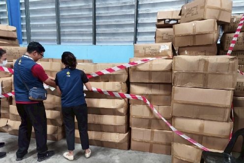 สมอ. บุกทลายคลังสินค้าย่านบางขุนเทียน ยึดหมวกกันน็อกเถื่อน-ปลอม มอก. กว่า 9,600 ใบ