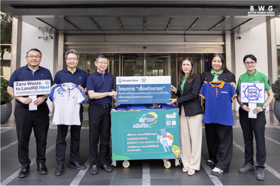บริษัท เบตเตอร์ เวิลด์ กรีน จำกัด (มหาชน) (BWG) ร่วมกับ ธนาคารกรุงเทพ จำกัด (มหาชน) (BBL) ขับเคลื่อนโครงการ “ส่งขยะกลับบ้าน” รับมอบเสื้อผ้าและชุดยูนิฟอร์มที่ไม่ใช้แล้วจากกิจกรรม “เสื้อเก่าเราขอ” รวมกว่า 7,000 ชิ้น น้ำหนัก 2.17 ตัน เพื่อนำเข้าสู่กระบวนการคัดแยกและผลิตเป็นเชื้อเพลิงขยะ (RDF) สำหรับผลิตพลังงานทดแทนในภาคอุตสาหกรรม ลดปริมาณขยะฝังกลบและการปล่อยก๊าซเรือนกระจก ตามแนวทาง ESG และเศรษฐกิจหมุนเวียน โดยมี นางพรเพ็ญ เผ่ารัชตพิบูลย์ รองกรรมการผู้จัดการสายงานปฏิบัติการ BWG เป็นผู้แทนรับมอบจาก นายกอบศักดิ์ ภูตระกูล กรรมการรองผู้จัดการใหญ่ ธนาคารกรุงเทพ จำกัด (มหาชน) ณ สำนักงานใหญ่ สีลม สะท้อนความร่วมมือของภาคธุรกิจในการบริหารจัดการของเสียอย่างมีประสิทธิภาพและยั่งยืน.
