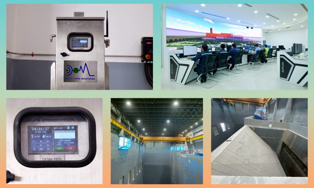 ขณะเดียวกัน ภายในบ่อพักขยะยังได้นำเทคโนโลยีห้องบ่อพักขยะแรงดันลบ (Negative Pressure System) มาใช้โดยออกแบบให้ภายในอาคารบ่อพักขยะมีความดันอากาศต่ำกว่าภายนอก ส่งผลให้อากาศจากภายนอกไหลเข้าสู่ภายในตลอดเวลา ทำให้กลิ่นจากขยะไม่สามารถรั่วไหลออกสู่ภายนอกได้ อากาศภายในบ่อพักขยะมูลฝอยจะถูกดูดเข้าสู่ระบบเตาเผาเพื่อนำไปใช้ในกระบวนการเผาไหม้ ทำให้กลิ่นและก๊าซต่าง ๆ ถูกกำจัดไปพร้อมกับกระบวนการเผาไหม้ที่มีอุณหภูมิสูง 850–1,100°C ซึ่งเป็นมาตรการสำคัญในการควบคุมกลิ่นและลดผลกระทบต่อสิ่งแวดล้อมโดยรอบของโครงการ จึงมั่นใจได้ว่า กลิ่นจากขยะจะถูกควบคุมอย่างมีประสิทธิภาพ ไม่แพร่กระจายออกสู่พื้นที่ภายนอก เนื่องจากอากาศภายในบ่อพักขยะทั้งหมดถูกนำเข้าสู่กระบวนการเผาไหม้ในเตาเผาที่มีอุณหภูมิสูง ซึ่งสามารถกำจัดกลิ่นและก๊าซต่าง ๆ ได้อย่างสมบูรณ์ ส่งผลให้การดำเนินงานของโครงการเป็นไปอย่างปลอดภัย เป็นมิตรต่อสิ่งแวดล้อม และไม่ก่อให้เกิดผลกระทบต่อชุมชนโดยรอบ.