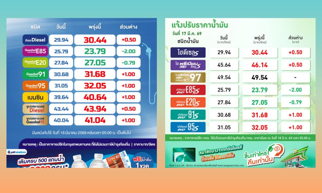 “กระทรวงพลังงาน ขอให้พี่น้องประชาชนเข้าใจในวิกฤตราคาพลังงานที่เกิดขึ้นทั่วโลกในเวลานี้ กระทรวงพลังงาน ได้ดำเนินทุกมาตรการเพื่อลดผลกระทบต่อค่าครองชีพของประชาชน จึงมีความจำเป็นต้องปรับขึ้นราคาน้ำมันดีเซล 50 สตางค์ต่อลิตร โดยจะมีผลในวันที่ 18 มีนาคม 2569 และได้กำหนดเพดานราคาน้ำมันดีเซลไว้ที่ 33 บาทต่อลิตร และเตรียมแผนที่จะเพิ่มการใช้ไบโอดีเซล ได้แก่ น้ำมันดีเซล B10 และ B20 ซึ่งจะมีราคาถูกลง คาดว่าจะสามารถดำเนินการได้เร็วๆ นี้