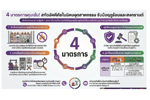 “เพราะความปลอดภัยของพนักงานและทรัพย์สินของผู้ประกอบการในนิคมอุตสาหกรรมคือหัวใจสำคัญ กนอ. จึงขอเน้นย้ำให้ผู้บริหารกำชับเจ้าหน้าที่เพิ่มความระมัดระวังเป็นพิเศษในช่วงอากาศร้อนจัดนี้ การมีมาตรการป้องกันที่เข้มงวดและแผนเผชิญเหตุที่พร้อมใช้งาน ไม่เพียงแต่ช่วยปกป้องธุรกิจของท่าน แต่ยังเป็นการแสดงความรับผิดชอบและสร้างความอุ่นใจให้กับชุมชนรอบข้างอย่างยั่งยืนอีกด้วย” ผู้ว่าการ กนอ.กล่าว