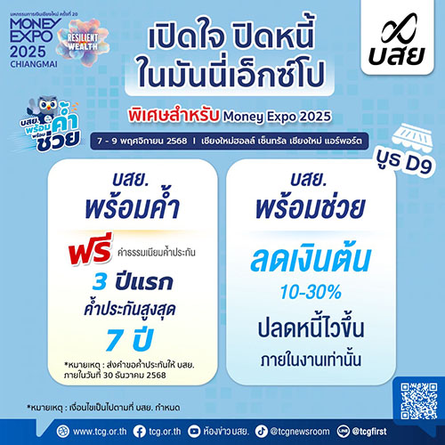 บสย. ยกทีมช่วย SMEs งาน Money Expo เชียงใหม่ จัดเต็ม ‘ค้ำประกัน-แก้หนี้’ฟรีค่าธรรมเนียม 7-9 พ.ย.นี้