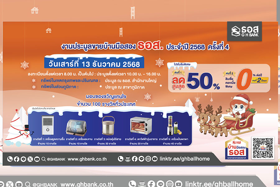 ธอส. จัดประมูลบ้านมือสองครั้งใหญ่ส่งท้ายปี ‘68 ลดสูงสุด 50% 13 ธ.ค.นี้
