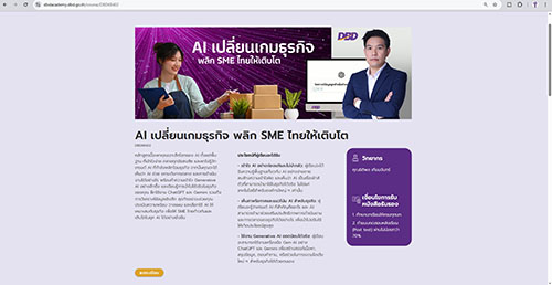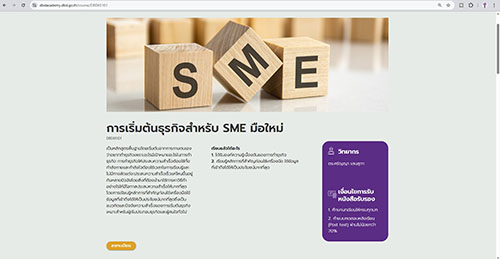 กรมฯ ได้คัดสรร 5 วิชาเด็ด เรียนง่าย จบไว ใช้ได้จริง โดยเป็นหลักสูตรคุณภาพที่ตอบโจทย์ร้านค้ายุคใหม่ ประกอบด้วย 1) การเริ่มต้นธุรกิจสำหรับ SME มือใหม่ 2) AI เปลี่ยนเกมธุรกิจ พลิก SME ไทยให้เติบโต 3) เส้นทางสู่ความสำเร็จธุรกิจร้านอาหาร 4) การตลาดด้าน e-Commerce และ 5) การตลาดยุคดิจิทัล ซึ่งครอบคลุมการบริหารจัดการร้านค้าและสินค้า การตลาดดิจิทัล และการใช้เทคโนโลยี AI เข้ามาช่วยธุรกิจ ที่สามารถนำไปต่อยอดในการเพิ่มรายได้ ลดรายจ่าย และเพิ่มทักษะเทคโนโลยีได้จริง”