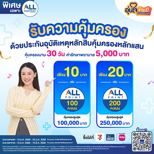 จึงนำเสนอ กรมธรรม์ที่คุ้มค่า “จ่ายหลักสิบ คุ้มครองหลักแสน”โดยประชาชนที่สนใจสามารถซื้อกรมธรรม์ประกันภัยอุ่นใจข้ามปี 20 บาท (ไมโครอินชัวรันส์) หรือกรมธรรม์ประกันภัยอุ่นใจข้ามปี 10 บาท (ไมโครอินชัวรันส์) ได้ง่าย ๆ เพียงแสดงบัตรประชาชนที่ร้านเซเว่นอีเลฟเว่นที่ครอบคลุมกว่า 15,500 สาขาทั่วประเทศ พร้อมชำระเบี้ยประกันภัย และพิเศษสำหรับสมาชิก ALL Member ใช้เพียง 200 คะแนน แลกรับฟรีความคุ้มครองสูงสุด 250,000 บาท