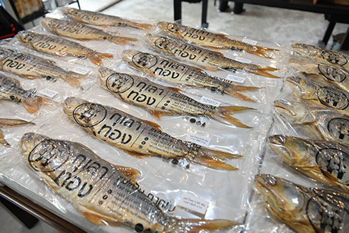 ภายหลังการประชุมหารือ อธิบดีกรมทรัพย์สินทางปัญญา และคณะ ได้ไปตรวจเยี่ยมกระบวนการผลิตสินค้าปลากุเลาเค็มตากใบ ณ ร้านกุเลาทองแม่แป้นตากใบ ซึ่งเป็นแหล่งผลิต GI ที่สำคัญแห่งหนึ่งของจังหวัดนราธิวาส โดยผู้ประกอบการจะใช้วัตถุดิบปลากุเลาสดในบริเวณปากแม่น้ำตากใบที่มีความอุดมสมบูรณ์สูง และใช้กรรมวิธีการผลิตจากภูมิปัญญาท้องถิ่นที่สืบทอดกันมาเกือบ 100 ปี ส่งผลให้ปลากุเลาเค็มตากใบ มีเอกลักษณ์โดดเด่นไม่เหมือนกับปลากุเลาเค็มจากแหล่งอื่น ทั้งด้านรสชาติที่ไม่เค็มจัด เนื้อแน่นเนียนละเอียด เมื่อทอดสุกจะฟูและมีกลิ่นหอมเป็นอย่างยิ่ง ซึ่งกรมฯ ได้ให้คำแนะนำแก่ผู้ประกอบการเกี่ยวกับแนวทางส่งเสริมด้านการตลาด การพัฒนาบรรจุภัณฑ์ การนำสินค้าปลากุเลาเค็มตากใบมาแปรรูปเป็นเมนูต่างๆ อาทิ น้ำพริกปลากุเลาเค็ม และหลนปลากุเลาเค็ม เป็นต้น เพื่อสร้างมูลค่าเพิ่มและขยายโอกาสทางการค้าให้กับสินค้า GI