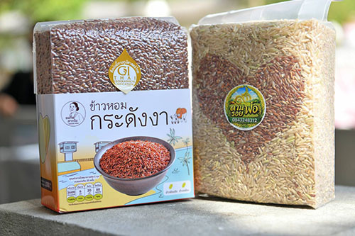 และในวันเดียวกันนี้ อธิบดีกรมทรัพย์สินทางปัญญา พร้อมคณะ ยังได้ลงพื้นที่ตรวจเยี่ยมแหล่งผลิตสินค้า GI “ข้าวหอมกระดังงานราธิวาส” ของกลุ่มแม่บ้านเกษตรกรบ้านโคกมะม่วง ซึ่งเป็นผู้ผลิตข้าวหอมกระดังงานราธิวาส สายพันธุ์หอมกระดังงา 59 โดยเป็นข้าวนาปีไวต่อช่วงแสง เปลือกมีสีฟาง ข้าวกล้องมีเยื่อหุ้มเมล็ดสีแดง เมื่อหุงสุกข้าวจะมีลักษณะนุ่มร่วนแต่ไม่แข็ง และมีกลิ่นหอมเป็นเอกลักษณ์คล้ายดอกกระดังงา โดยข้าวหอมกระดังงานราธิวาสขึ้นทะเบียน GI เมื่อปี 2558 ก่อนได้ขึ้นทะเบียน GI ราคา 80 บาทต่อกิโลกรัม และหลังเป็น GI ราคาประมาณ 120 บาทต่อกิโลกรัม