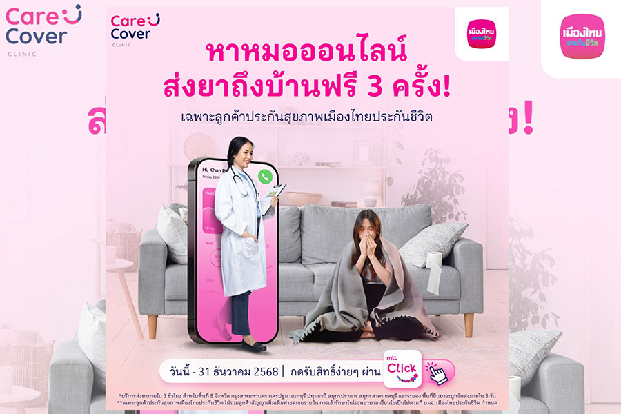 เมืองไทยฯ – CareCover Clinic มอบบริการพบแพทย์ออนไลน์ พร้อมรอรับยาที่บ้าน ฟรี!