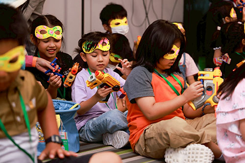ฐานที่ 6 : 7 Action Art ลองให้น้องๆ ทดลองเป็นศิลปินผลิตของเล่นจากดินเบา ออกมาเป็นหน้ากากเรืองแสงสุดเท่ ที่จะไปต่อสู้กับปีศาจ