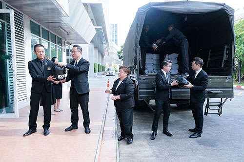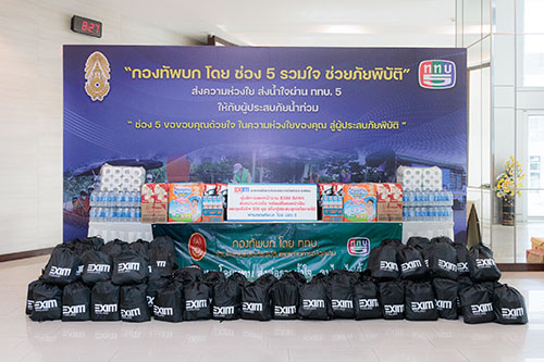 นายชลัช รัตนบุญนิธิ กรรมการผู้จัดการ ธนาคารเพื่อการส่งออกและนำเข้าแห่งประเทศไทย (EXIM BANK) นำทีม EXIM BANK ส่งมอบถุงยังชีพที่ผู้บริหารและพนักงาน EXIM BANK ร่วมแรงร่วมใจจัดทำบรรจุอาหารแห้ง อาหารพร้อมทาน ไฟฉาย และของใช้จำเป็นต่อการดำรงชีวิต จำนวน 500 ชุด ร่วมทั้งเครื่องอุปโภคบริโภค และของใช้จำเป็นที่ผู้บริหารและพนักงานร่วมบริจาคสมทบ ผ่านโครงการ “กองทัพบก โดย ช่อง 5 รวมใจ ช่วยภัยพิบัติ” เพื่อช่วยเหลือและบรรเทาความเดือดร้อนแก่ประชาชนที่ประสบอุทกภัยในพื้นที่ภาคใต้