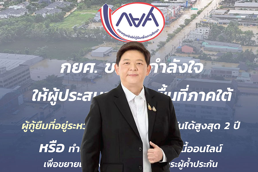 กยศ. ส่งกำลังใจผู้ประสบภัยใต้ เปิดผ่อนผันหนี้สูงสุด 2 ปี ‘ไม่ปรับ-ไม่จ่ายดบ.’