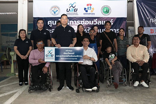 นอกจากนี้ บสย. ยังให้ความสำคัญกับ “กลุ่มเปราะบาง” ที่ได้รับผลกระทบ ในพื้นที่จังหวัดสงขลา โดยเฉพาะผู้พิการรวมถึงผู้สูงอายุที่นั่งวีลแชร์ ซึ่งวีลแชร์และอุปกรณ์ได้รับความเสียหาย และสูญหาย จากน้ำท่วม จึงเป็นที่มาของความร่วมมือ ระหว่าง บสย. มูลนิธิคนพิการไทย และสมาคมคนพิการจังหวัดสงขลา ร่วมเปิดศูนย์บริการซ่อมวีลแชร์และอุปกรณ์สำหรับคนพิการที่ได้รับผลกระทบจากอุทกภัยพื้นที่หาดใหญ่ ณ ศูนย์บริการคนพิการจังหวัด พร้อมเยี่ยมชมการดำเนินงานและให้กำลังใจทีมช่างคนพิการ โดยมีนายวินัย ขวัญปาน นายกสมาคมคนพิการจังหวัดสงขลา ให้การต้อนรับ เมื่อวันที่ 9 ธันวาคม 2568.