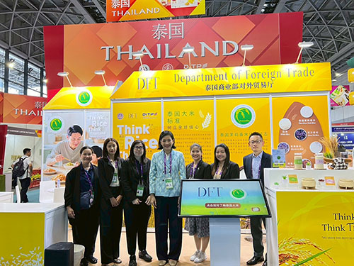 ทั้งนี้ กรมฯได้จัดแสดงตัวอย่างข้าวไทยชนิดต่างๆ เช่น ข้าวหอมมะลิไทย ข้าวเหนียว และข้าวขาว รวมทั้ง ได้นำเสนอข้าวคุณลักษณะพิเศษของไทยและข้าวเพื่อสุขภาพที่มีคุณค่าทางโภชนาการสูงให้เป็นที่รู้จักมากยิ่งขึ้น อาทิ ข้าวไรซ์เบอร์รี่ ข้าวหอมนิล และข้าวสังข์หยด เพื่อตอบสนองต่อความต้องการในตลาดจีนที่เติบโตขึ้นอย่างต่อเนื่อง และยังได้นำเสนอข้อมูลเกี่ยวกับข้าวไทย “ความหลากหลายที่มาพร้อมคุณค่า” ผ่านจอ Touchscreen ให้ผู้เยี่ยมชมคูหาได้เรียนรู้เกี่ยวกับข้าวไทยหลากหลายชนิดทั้งในด้านลักษณะและคุณค่าโภชนาการ ในรูปแบบ interactive เพื่อเพิ่มความน่าสนใจ นอกจากนี้ กรมฯ ยังได้สาธิตการหุงข้าวไทยควบคู่กับการปรุงอาหารไทย