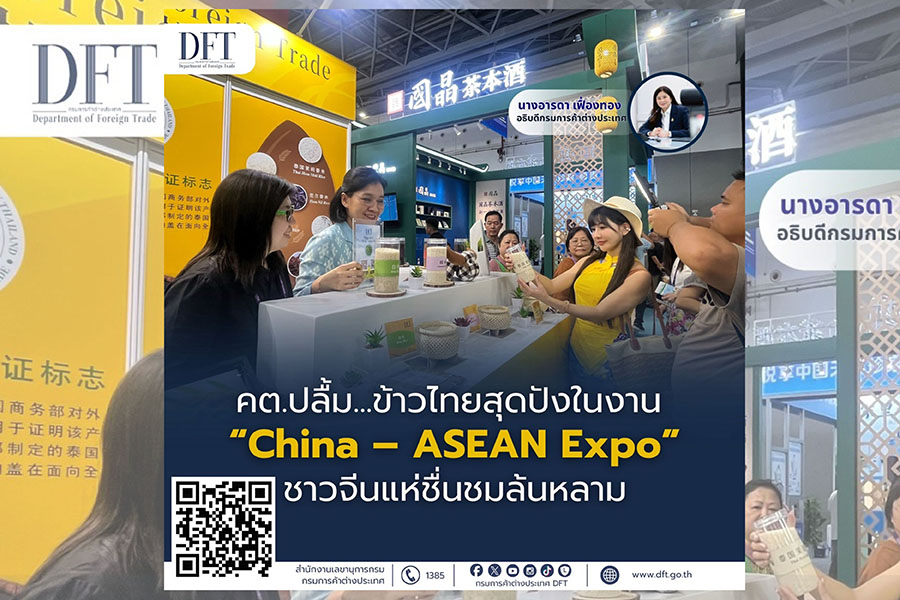 กรมการค้าต่างประเทศ จัดคณะผู้แทนเดินทางไปจัดกิจกรรมประชาสัมพันธ์ข้าวไทยในงานแสดงสินค้า China – ASEAN Expo ครั้งที่ 22 ระหว่าง17 – 21 กันยายน 2568 ณ เมืองหนานหนิง เขตปกครองตนเองกว่างซีจ้วง โดยมีผู้สนใจล้นหลามตลอดงานกว่า 3,000 คน เผย! ผู้ชมส่วนใหญ่ ได้รับรู้ข้อมูลข้าวไทย ทั้งการเลือกซื้อและวิธีหุง