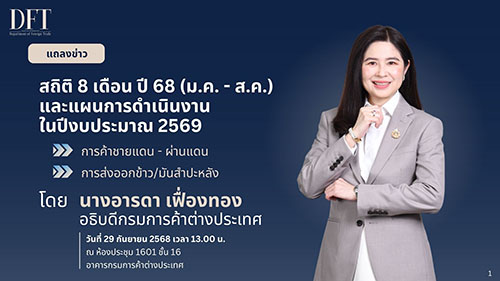 นางอารดา เฟื่องทอง อธิบดีกรมการค้าต่างประเทศ กระทรวงพาณิชย์ เปิดเผยตัวเลข การค้าชายแดนและการค้าผ่านแดน เดือนสิงหาคม 2568 ว่า มีมูลค่าการค้ารวม 150,131 ล้านบาท หดตัว -3.1% เมื่อเทียบกับช่วงเดียวกันของปีก่อน เป็นการส่งออก 75,056 ล้านบาท (-14.7%) และการนำเข้า 75,074 ล้านบาท (+12.2%) โดยไทยขาดดุลการค้าในเดือนสิงหาคม 2568 ทั้งสิ้น -18 ล้านบาท ส่งผลให้ 8 เดือนแรกของปี 2568 การค้าชายแดนและการค้าผ่านแดนมีมูลค่าการค้ารวม 1,338,400 ล้านบาท (+9.2%) เป็นการส่งออก 763,533 ล้านบาท (+7.6%) การนำเข้า 574,867 ล้านบาท (+11.4%) และไทยได้ดุลการค้า 188,666 ล้านบาท