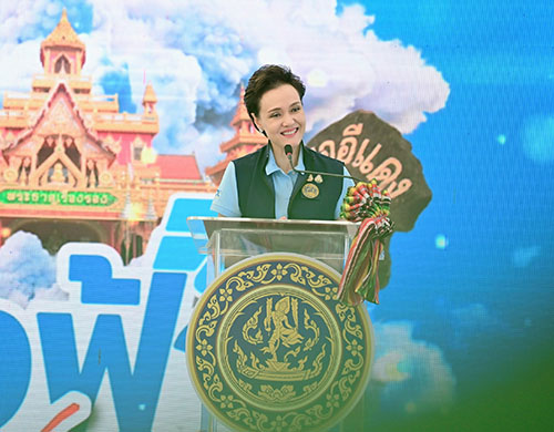“เราจะไม่หยุดแค่การจำหน่ายสินค้าเท่านั้น แต่จะช่วยยกระดับมาตรฐานสินค้าท้องถิ่น โดย กรมทรัพย์สินทางปัญญาได้ร่วมส่งเสริมให้สินค้าของศรีสะเกษให้มีการขึ้นทะเบียน GI (สิ่งบ่งชี้ทางภูมิศาสตร์) เพิ่มเติม เพื่อสร้างมูลค่าและรายได้ให้กับเกษตรกร ซึ่งปัจจุบัน สินค้า GI ของจังหวัดสร้างรายได้กว่า 4,500 ล้านบาท แล้ว ถือเป็นรายได้ที่กลับไปสู่พี่น้องชาวศรีสะเกษอย่างแท้จริง ขอเชิญชวนพี่น้องประชาชนในจังหวัดศรีสะเกษและจังหวัดใกล้เคียง มาร่วมเลือกซื้อสินค้าคุณภาพในราคาประหยัดจากโครงการมหกรรมธงฟ้า ซึ่งกระทรวงพาณิชย์ได้คัดสรรมาอย่างดี” นางศุภจี ระบุ