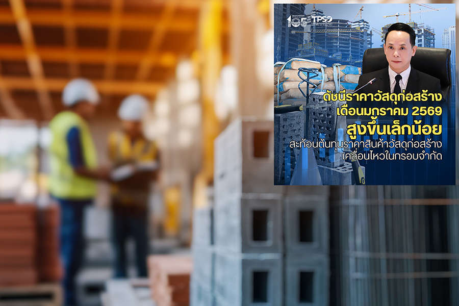 สำนักงานนโยบายและยุทธศาสตร์การค้า เผยดัชนีราคาวัสดุก่อสร้างเดือนมกราคม 2569 เพิ่มขึ้นเพียง 0.1% จากอุปสงค์ก่อสร้างยังชะลอ อสังหาฯ คงค้างสูง ขณะที่แนวโน้มกุมภาพันธ์ราคายังเคลื่อนไหวในกรอบจำกัด