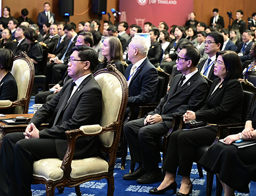 ในด้านความร่วมมือระหว่างประเทศ รัฐมนตรีว่าการกระทรวงการต่างประเทศย้ำว่า ความแตกกระจายของระบบเศรษฐกิจโลกก่อให้เกิดต้นทุนที่แท้จริง และไม่มีประเทศใดสามารถรับมือกับความเปลี่ยนแปลงของการค้าโลกได้โดยลำพัง ประเทศไทยจึงสนับสนุนความร่วมมือพหุภาคีในรูปแบบเครือข่ายความร่วมมือระหว่างภูมิภาค และการสร้างหุ้นส่วนกับประเทศในภูมิภาคต่างๆ อาทิ เอเชียใต้ ตะวันออกกลาง แอฟริกา และลาตินอเมริกา ควบคู่กับการเสริมสร้างความร่วมมือในกรอบความร่วมมือระดับภูมิภาค