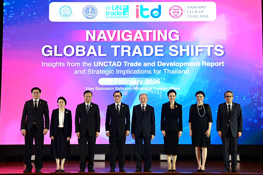 เมื่อวันที่ 16 กุมภาพันธ์ 2569 สถาบันระหว่างประเทศเพื่อการค้าและการพัฒนา (องค์การมหาชน) ITD ร่วมกับกระทรวงพาณิชย์ กระทรวงการต่างประเทศ UN Trade and Development (UNCTAD) และสมาคมนักเรียนเก่าฮาร์วาร์ดแห่งประเทศไทย จัดเวทีสัมมนาวิชาการนานาชาติหัวข้อ “Navigating Global Trade Shifts: Insights from the UNCTAD Trade and Development Report and Strategic Implications for Thailand” ณ ห้องวิเทศสโมสร กระทรวงการต่างประเทศ และผ่านระบบ Hybrid โดยมีผู้เข้าร่วมกว่า 150 คน จากภาครัฐ ภาคเอกชน สถาบันการศึกษา และองค์กรระหว่างประเทศ เพื่อร่วมกันวิเคราะห์ทิศทางเศรษฐกิจโลกจากรายงาน Trade and Development Report 2025 (TDR 2025) และกำหนดยุทธศาสตร์การค้าของไทยให้สอดรับกับบริบทโลกที่กำลังเปลี่ยนผ่านอย่างมีนัยสำคัญ