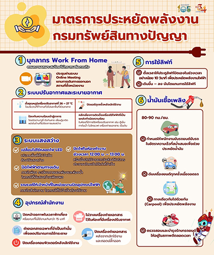 กรมทรัพย์สินทางปัญญาขานรับนโยบายรัฐบาล ยกระดับการใช้พลังงานในองค์กรด้วย 6 มาตรการเร่งด่วน เน้น Work From Home ปรับการใช้ไฟฟ้าและอุปกรณ์สำนักงานอย่างคุ้มค่า พร้อมส่งเสริมการใช้พลังงานที่เป็นมิตรต่อสิ่งแวดล้อม คาดช่วยลดการใช้เชื้อเพลิงได้กว่า 1.14 แสนลิตรต่อปี มูลค่าราว 3.66 ล้านบาท
