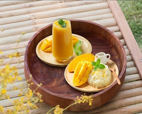 ในโอกาสพิเศษเช่นนี้ “เชฟคำนาง” (ณัฎฐภรณ์ คมจิต) แห่งเฮือนคำนาง ผู้รับหน้าที่ออกแบบเมนูอาหารในงานแต่ง ได้นำสินค้า GI มะม่วงน้ำดอกไม้สีทองบ้านแฮดขอนแก่น มารังสรรค์เป็นเมนูหลากหลาย ได้แก่ ชามะม่วงสีทอง น้ำมะม่วงสด และข้าวเหนียวมะม่วงบ้านแฮด โดยให้ความสำคัญตั้งแต่การคัดเลือกวัตถุดิบที่มีคุณภาพ ไปจนถึงการออกแบบรสชาติและการนำเสนอ เพื่อเสิร์ฟความหวานและสะท้อนอัตลักษณ์ของมะม่วงท้องถิ่นได้อย่างลงตัว แนวคิดดังกล่าวไม่เพียงถ่ายทอดเสน่ห์ของวัตถุดิบ GI สู่เมนูร่วมสมัยเท่านั้น แต่ยังเปิดโอกาสให้ผู้บริโภคได้รู้จักสินค้า GI ชนิดนี้มากขึ้น และเป็นอีกหนึ่งช่องทางในการสนับสนุนเกษตรกรผู้ผลิตในพื้นที่ได้อย่างเป็นรูปธรรม