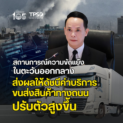 การสูงขึ้นของดัชนีค่าบริการขนส่งสินค้าทางถนน ปัจจัยสำคัญมาจากสถานการณ์ความขัดแย้งในตะวันออกกลางที่ส่งผลกระทบต่ออุปทานน้ำมันในตลาดโลก ทำให้ราคาขายปลีกน้ำมันดีเซลในประเทศ ปรับตัวสูงขึ้น ส่งผลให้ผู้ประกอบการขนส่งมีภาระต้นทุนสูงขึ้นทันที จึงจำเป็นต้องปรับขึ้นราคาค่าขนส่งให้สอดคล้องกับต้นทุนที่เพิ่มขึ้น อย่างไรก็ตาม การขนส่งสินค้าในกลุ่มเกษตรกรรมปรับตัวลดลงจากความต้องการขนส่งสินค้าในกลุ่มพืชยืนต้นที่ลดลง ส่งผลให้เกิดภาวะการแข่งขันที่สูงขึ้นจากการลดลงของอุปสงค์ในการขนส่งสินค้าเกษตร ทำให้ราคาค่าขนส่งปรับตัวลดลง แม้ว่าจะต้องเผชิญกับแรงกดดันจากต้นทุนน้ำมันที่สูงขึ้นในภาพรวมก็ตาม