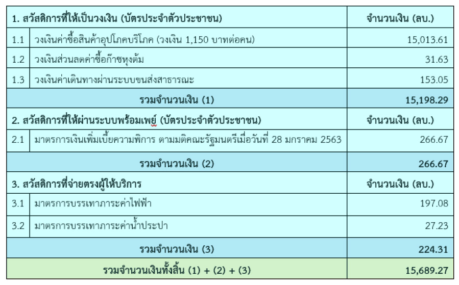 – วงเงินซื้อสินค้า 1,150 บาทต่อคนต่อเดือน