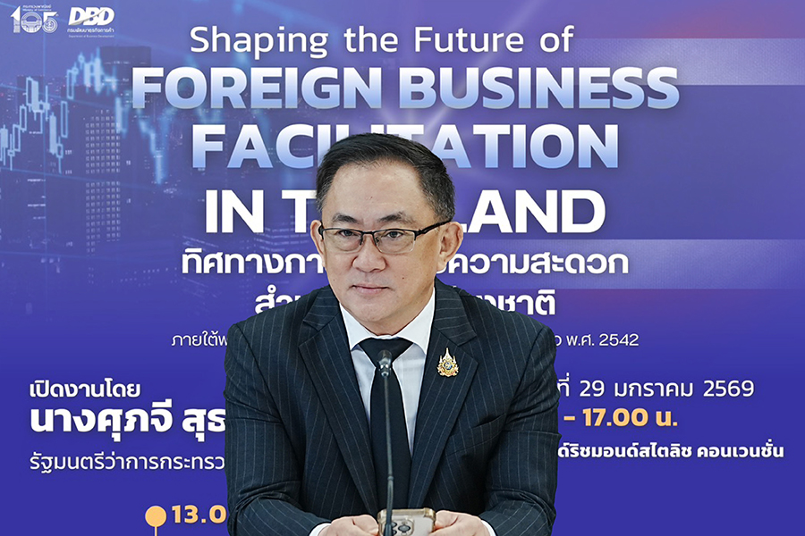 นายพูนพงษ์ นัยนาภากรณ์ อธิบดีกรมพัฒนาธุรกิจการค้า(DBD) กระทรวงพาณิชย์ เปิดเผยว่า ในวันที่ 29 มกราคม 2569 ที่จะถึงนี้ กรมฯ เตรียมจัดสัมมนาใหญ่เรื่อง ‘Shaping the Future of Foreign Business Facilitation in Thailand : ทิศทางการอำนวยความสะดวกสำหรับธุรกิจต่างชาติ ภายใต้พระราชบัญญัติการประกอบธุรกิจของคนต่างด้าว พ.ศ. 2542’ โดยได้เชิญหน่วยงานสถานทูต หอการค้าต่างประเทศ พันธมิตรด้านกฎหมาย ด้านบัญชี หน่วยงานภาครัฐที่เกี่ยวข้องกับการลงทุน กว่า 500 ราย เข้าร่วมงานสัมมนาฯ เพื่อรับฟังข้อมูล แนวทางการอำนวยความสะดวกในการลงทุนของชาวต่างชาติ การขออนุญาตประกอบธุรกิจ และการกำกับดูแลและป้องกันปราบปรามธุรกิจผิดกฎหมาย ภายใต้พระราชบัญญัติการประกอบธุรกิจของคนต่างด้าว พ.ศ. 2542 เพื่อสร้างความตระหนักรู้ถึงความสำคัญของกฎหมาย และสร้างความเข้าใจในกฎหมาย รวมถึงให้ข้อมูลเกี่ยวกับการอำนวยความสะดวกแก่นักลงทุนต่างชาติที่เข้ามาแล้วหรือกำลังจะเข้ามาประกอบธุรกิจในประเทศไทยภายใต้การกำกับของกฎหมายฉบับดังกล่าว