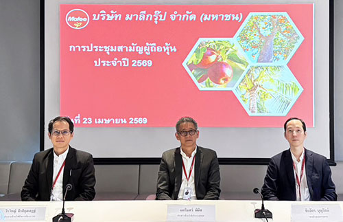 บริษัท บริษัท มาลี กรุ๊ป จำกัด (มหาชน) หรือ MALEE จัดประชุมสามัญผู้ถือหุ้นประจำปี 2569 โดยที่ประชุม ซึ่งมี นายชัยฉัตร บุญรัตน์ รองประธานกรรมการ นายเอกรินทร์ พินิจ ประธานเจ้าหน้าที่บริหาร นายวีรวิชญ์ กีรติกุลเสฏฐ์ ประธานเจ้าหน้าที่ฝ่ายการเงิน พร้อมด้วย คณะกรรมการและผู้บริหาร มีมติ “อนุมัติทุกวาระ” ตามที่คณะกรรมการเสนอ