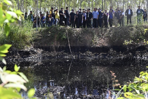ทั้งนี้ เหตุการณ์ดังกล่าวเกิดขึ้นเมื่อวันที่ 18 มิถุนายน 2567 เจ้าหน้าที่ตำรวจสถานีตำรวจภูธรแปลงยาว ได้จับกุมรถบรรทุกน้ำมันหล่อลื่นใช้แล้ว ซึ่งเป็นวัตถุอันตรายชนิดที่ 3 ขณะลักลอบนำของเสียมาทิ้งในบ่อดินภายในสวนยูคาลิปตัส หมู่ที่ 3 ตำบลหนองไม้แก่น ต่อมาสำนักงานอุตสาหกรรมจังหวัดฉะเชิงเทราได้ส่งเรื่องให้พนักงานสอบสวนดำเนินคดีตามกฎหมาย กระทั่งพบผู้กระทำผิด 3 ราย ให้การรับสารภาพ และอยู่ระหว่างรวบรวมพยานหลักฐานเพื่อส่งฟ้อง พร้อมสืบสวนหาผู้ถือกรรมสิทธิ์ที่ดินเพิ่มเติม ซึ่งปัจจุบันคดียังอยู่ระหว่างการสอบสวนและติดตามความคืบหน้าอย่างต่อเนื่อง