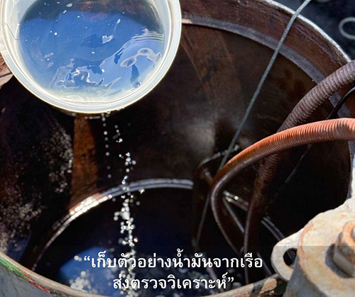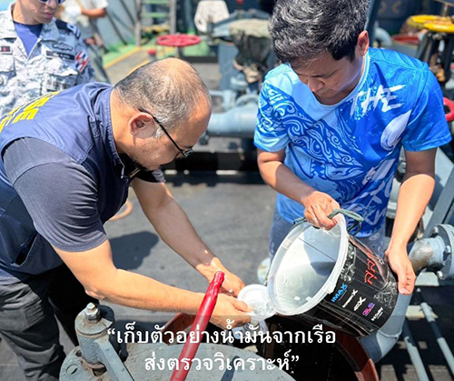 ผลการตรวจสอบเบื้องต้นพบของเหลวภายในระวางบรรทุกมีลักษณะคล้ายน้ำมันดีเซล และไม่สามารถระบุที่มาของน้ำมันได้ เจ้าหน้าที่จึงได้เก็บตัวอย่างน้ำมันส่งให้กลุ่มวิเคราะห์สินค้าและของกลาง กรมสรรพสามิต เพื่อดำเนินการตรวจพิสูจน์ตามขั้นตอน โดยจากการตรวจวัดปริมาณน้ำมันเบื้องต้นพบว่า มีปริมาณประมาณ 250,000 ลิตร
