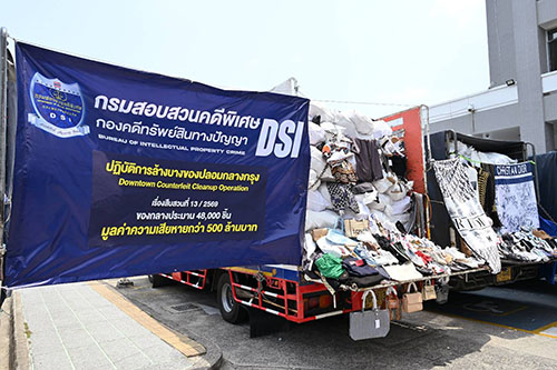 โดยเมื่อวันที่ 12 มีนาคม 2569 พันตำรวจตรี ยุทธนา แพรดำ อธิบดีกรมสอบสวนคดีพิเศษ ได้สั่งการให้กองคดีทรัพย์สินทางปัญญา นำกำลังเข้าตรวจค้นตามหมายค้นของศาลทรัพย์สินทางปัญญาและการค้าระหว่างประเทศกลาง รวม 17 จุด ประกอบด้วยร้านค้าจำนวน 14 จุด และเป็นห้องเก็บสินค้าจำนวน 3 จุด ในพื้นที่กรุงเทพมหานคร โดยมุ่งเป้าไปที่ 5 เครือข่ายผู้ค้ารายใหญ่ ผลการปฏิบัติการสามารถตรวจยึดสินค้าละเมิดเครื่องหมายการค้าประเภทสินค้าแบรนด์เนมปลอม อาทิ LOUIS VUITTON DIOR GOYARD NIKE และ ADIDAS รวมทั้งสิ้น 48,945 ชิ้น คิดเป็นมูลค่าของกลางกว่า 100 ล้านบาท มูลค่าความเสียหายกว่า 500 ล้านบาท