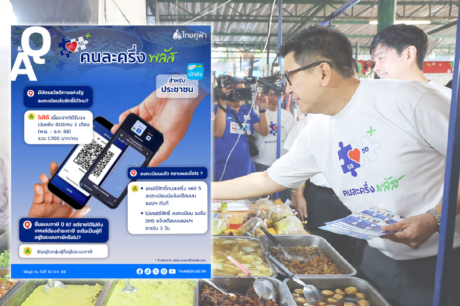 “คนละครึ่งพลัส” เปิดวันแรกคึกคักทั่วประเทศ 2 ชั่วโมงแรก ทะลุ 13 ล้านสิทธิ รัฐ! ย้ำระบบไม่ล่ม–จองสิทธิให้แล้วไม่ต้องลงซ้ำ ผู้ยื่นภาษีได้ 2,400 บาท ไม่ยื่นได้ 2,000 บาท ใช้ได้ทั้งสินค้า บริการ และขนส่งสาธารณะ “เดินทางทั่วไทย จ่ายครึ่งเดียว”