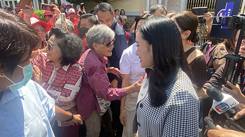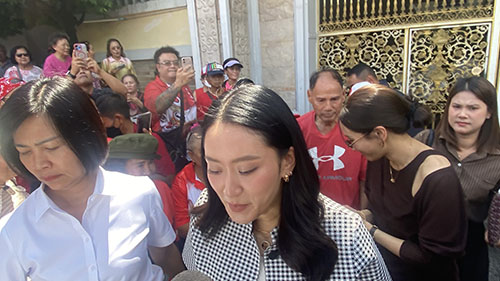 ผู้สื่อข่าวรายงานว่า จากนั้น น.ส.แพทองธาร และ น.ส.พินทองทา ได้เดินมาพูดคุยทักทาย จับมือและขอบคุณกลุ่มคนเสื้อแดงที่ปักหลักรอให้กำลังใจ ก่อนขึ้นรถเดินทางกลับทันที.