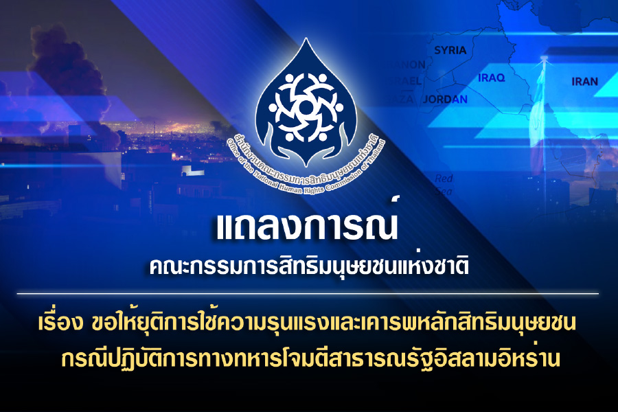 แถลงการณ์คณะกรรมการสิทธิมนุษยชนแห่งชาติ เรียกร้อง “คู่สงคราม” ให้ยุติการใช้ความรุนแรงและเคารพหลักสิทธิมนุษยชน กรณีปฏิบัติการทางทหารโจมตีสาธารณรัฐอิสลามอิหร่าน