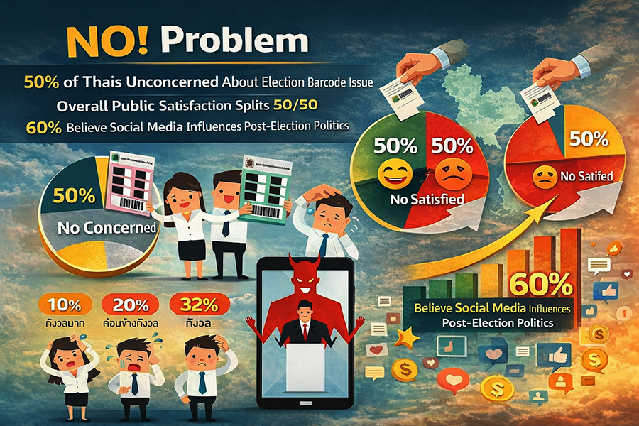 ด้านความกังวลของประชาชนเกี่ยวกับรัฐบาลนายกฯ แพทองธาร ชินวัตร พบว่า ส่วนใหญ่ ร้อยละ 36.03 ระบุว่า เป็นเรื่องผลงาน ของรัฐบาลไม่เป็นไปตามที่สัญญาและคาดหวัง ร้อยละ 32.14 ระบุว่า อายุและประสบการณ์ทางการเมือง/การบริหารของนายกฯ อาจทำให้เกิดการตัดสินใจที่ผิดพลาด และบทบาทของคุณทักษิณ ชินวัตร ที่เกินขอบเขตจนนำไปสู่การถูกฟ้องเรื่องการครอบงำ นายกฯ/พรรค/รัฐบาล ในสัดส่วนที่เท่ากัน ร้อยละ 24.89 ระบุว่า การบริหารงานที่ไม่ระมัดระวังจนอาจเกิดการทุจริต คอร์รัปชัน