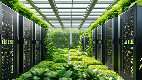 สำหรับ Green Data Center คือ ศูนย์ข้อมูลที่ออกแบบและดำเนินงานที่ก่อให้เกิดผลกระทบต่อสิ่งแวดล้อมน้อยที่สุด อาทิ การออกแบบอาคารและก่อสร้างโดยใช้วัสดุก่อสร้างที่เป็นมิตรต่อสิ่งแวดล้อม การใช้ระบบควบคุมอุณหภูมิและแสงสว่างในอาคารอัตโนมัติ การติดตั้งแผงโซลาร์เซลล์ การซื้อไฟฟ้าจากแหล่งพลังงานสะอาด และ การใช้เทคโนโลยี AI, Internet of Things, Machine Learning และ Cloud Computing เพื่อเพิ่มประสิทธิภาพการใช้พลังงานและหมุนเวียนพลังงานความร้อนกลับมาใช้ใหม่ นอกจากนี้ Green Data Center ยังช่วยลดต้นทุนเกี่ยวกับพลังงานและทรัพยากร ลดผลกระทบต่อสิ่งแวดล้อมอย่างเป็นรูปธรรม เช่น ลดการปล่อยก๊าซคาร์บอนไดออกไซด์ เพิ่มประสิทธิภาพของการใช้พลังงาน (energy efficiency) รวมถึง เสริมสร้างภาพลักษณ์ขององค์กรให้มีความรับผิดชอบต่อสิ่งแวดล้อม และตอบโจทย์ความต้องการของผู้บริโภคที่ให้ความสำคัญกับความยั่งยืน