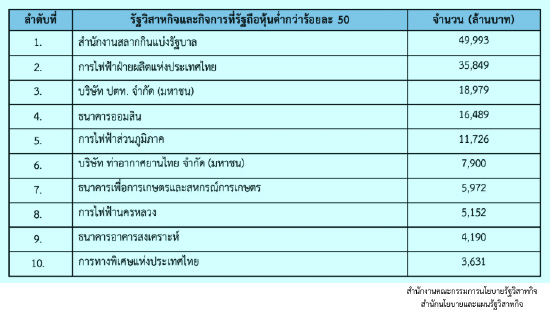 นายธิบดี วัฒนกุล ผู้อำนวยการสำนักงานคณะกรรมการนโยบายรัฐวิสาหกิจ (สคร.) เปิดเผยว่า ในปีงบประมาณ 2568 (1 ตุลาคม 2567 – 30 กันยายน 2568) สคร. มีเป้าหมายในการจัดเก็บเงินนำส่งรายได้แผ่นดิน/เงินปันผลจากรัฐวิสาหกิจและกิจการที่รัฐถือหุ้นต่ำกว่าร้อยละ 50 (เงินนำส่งรายได้แผ่นดินฯ) จำนวน 176,500 ล้านบาท โดย สคร. สามารถจัดเก็บเงินนำส่งรายได้แผ่นดินฯ สะสม รวมทั้งสิ้น จำนวน 177,379 ล้านบาท สูงกว่าเป้าหมายการจัดเก็บทั้งปีอยู่ที่ จำนวน 879 ล้านบาท หรือคิดเป็นร้อยละ 100.5 ทั้งนี้ รัฐวิสาหกิจที่นำส่งรายได้แผ่นดินหรือเงินปันผลสูงสุด 10 อันดับแรก แสดงได้ตามตาราง ดังนี้