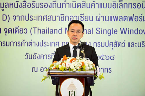 นายพันธ์ทอง ลอยกุลนันท์ อธิบดีกรมศุลกากร กล่าวภายหลังพิธีลงนามบันทึกข้อตกลงว่าด้วยการเชื่อมโยงข้อมูลหนังสือรับรองถิ่นกำเนิดสินค้าแบบอิเล็กทรอนิกส์ ภายใต้ความตกลงเขตการค้าเสรีอาเซียน (ATIGA e-Form D) ผ่านแพลตฟอร์มกลางการเชื่อมโยงข้อมูลอิเล็กทรอนิกส์ ณ จุดเดียว (Thailand National Single Window: THAI NSW) ว่า ตามที่ ดร. เอกนิติ นิติทัณฑ์ประภาศ รองนายกรัฐมนตรีและรมว.คลังได้มอบหมายให้กรมศุลกากรบูรณาการกับหน่วยงานที่เกี่ยวข้อง ในการเชื่อมโยงข้อมูลระหว่างหน่วยงานภาครัฐ และพัฒนาแพลตฟอร์มกลาง THAI NSW เพื่อเป็นการเพิ่มขีดความสามารถในการแข่งขันของประเทศ กรมศุลกากรจึงได้ขานรับนโยบายรัฐบาลดังกล่าว