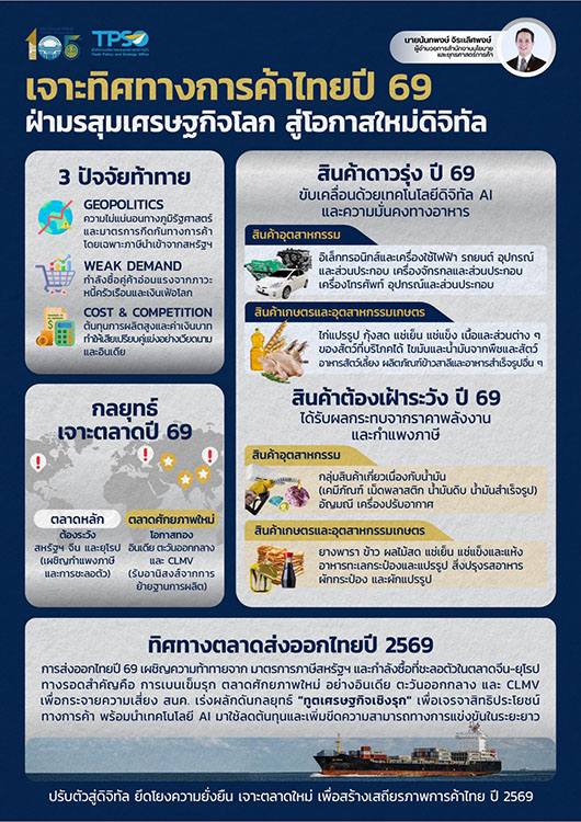 พาณิชย์ ชี้! การค้าไทยปี’69 เสี่ยงผันผวน เผย! ยังมีโอกาสจาก ‘ตลาดใหม่–ห่วงโซ่อุปทานโลก’