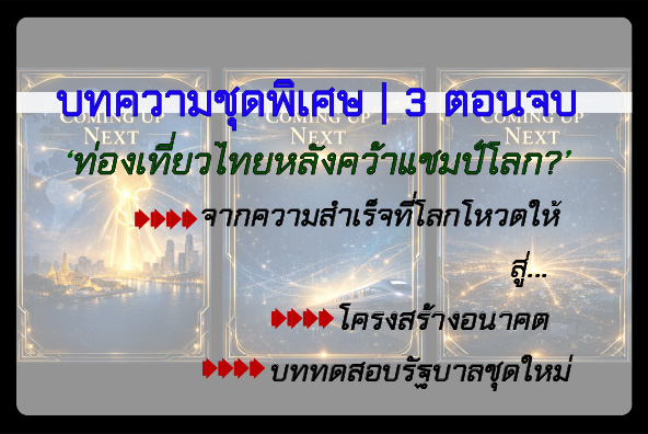 เมื่อเสียงของตลาดโลก…ส่งสัญญาณชัดเช่นนี้ การท่องเที่ยวไทย จึงไม่ใช่…ภาคเศรษฐกิจที่ “กำลังฟื้น” อีกต่อไป แต่กำลังเข้าสู่สถานะของ “ภาคเศรษฐกิจหลักที่ต้องบริหารความสำเร็จให้เป็น”