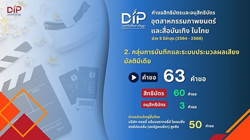 สำหรับ สถิติคำขอสิทธิบัตรและอนุสิทธิบัตรกลุ่มอุตสาหกรรมภาพยนตร์และสื่อบันเทิงในไทย ในช่วง 5 ปีล่าสุด (2564 – 2568) พบว่า มีการขับเคลื่อนเทคโนโลยีโดยผสานความคิดสร้างสรรค์เข้ากับนวัตกรรมอย่างเป็นรูปธรรม โดยสามารถ จำแนกนวัตกรรมออกเป็น 2 กลุ่มหลัก ได้แก่…
