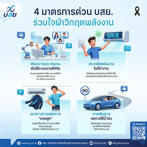 “มาตรการดังกล่าวมีเป้าหมายเพื่อลดการใช้พลังงานในองค์กร ควบคู่กับการปรับรูปแบบการทำงานให้สอดคล้องกับสภาพแวดล้อมเศรษฐกิจโลกที่เปลี่ยนแปลง โดยกำหนดแนวทางหลัก 4 ด้าน ได้แก่ การส่งเสริมการทำงานจากที่บ้าน (Work from Home) และ การประชุมออนไลน์เพื่อลดการเดินทาง การใช้ระบบงานดิจิทัลเพื่อลดการใช้กระดาษ การบริหารจัดการพลังงานภายในสำนักงาน เช่น การปิดไฟในพื้นที่ที่ไม่จำเป็น และการจำกัดพื้นที่เปิดเครื่องปรับอากาศเฉพาะจุดบริการสำคัญ” ดร.สิทธิกร ระบุ