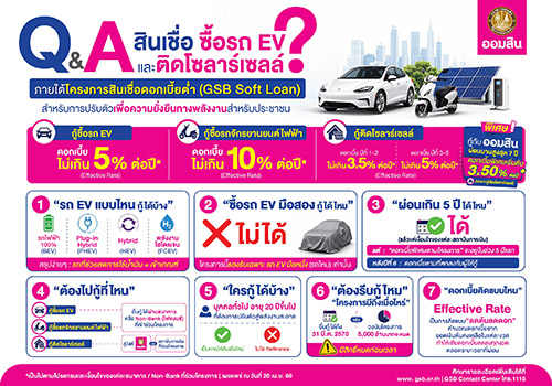 แต่ ในอีกชั้นหนึ่ง กลับมี วงเงิน 5,000 ล้านบาท ที่ถูกจัดสรรเฉพาะสำหรับ “การปรับตัวด้านพลังงาน” ผ่านสินเชื่อโซลาร์เซลล์และยานยนต์ไฟฟ้า